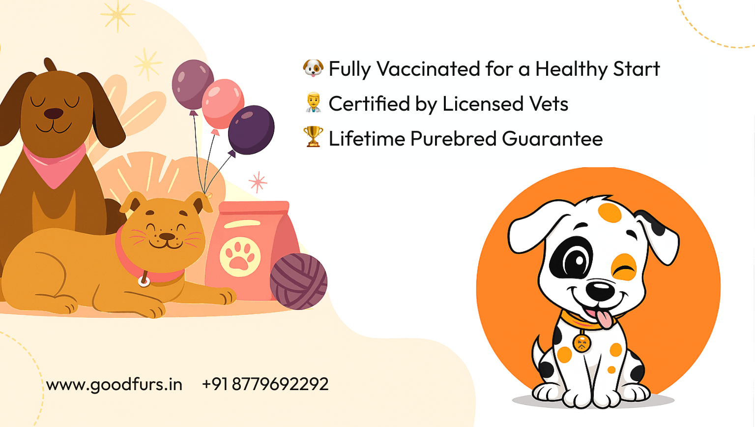 At Good Furs, every Golden Retriever puppy is carefully selected from ethical breeders and undergoes health and quality checks to ensure you get a healthy and well-socialized pet. Our puppies come with: